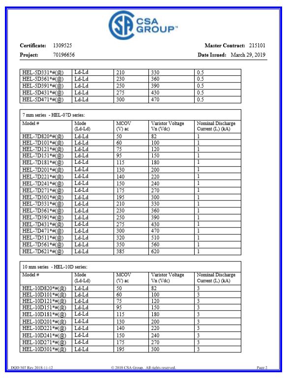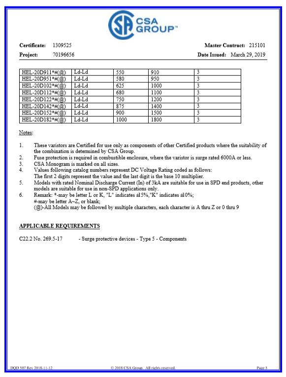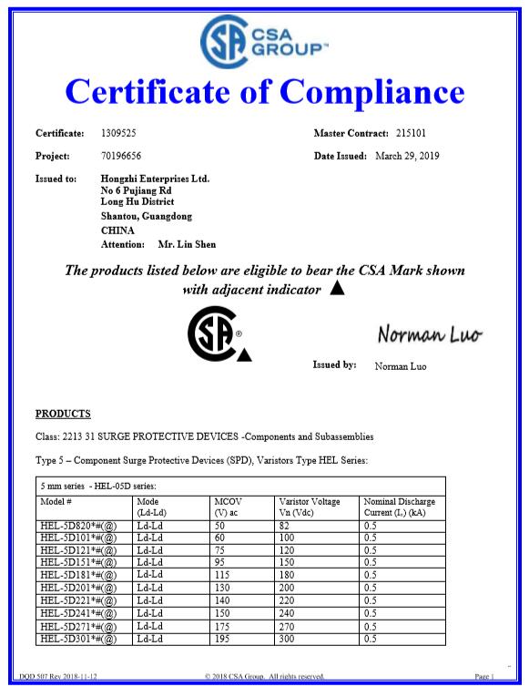 壓敏CQC-5D系列證書