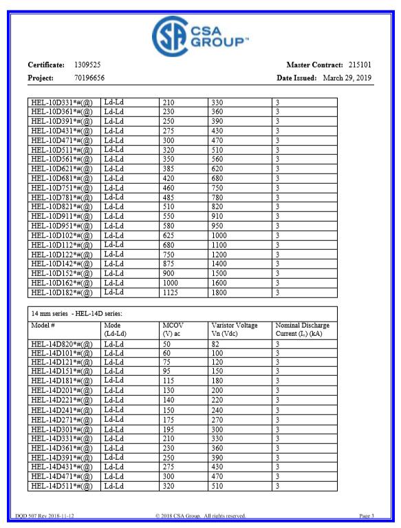 壓敏CQC-10D系列證書