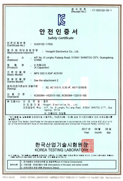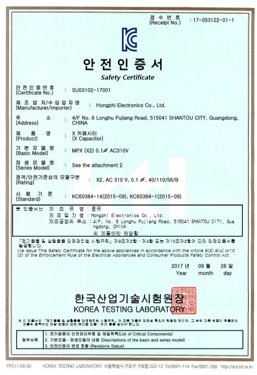 金屬化薄膜電容UL證書